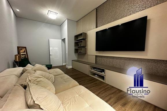 ÁREA ÍNTIMA: – com pé direto de 4 metros, toda em vinílico – sala de TV reservada com painel, nichos, e armários planejados, cortinas feitas sob medida automatizada, papel de parede, porta de acesso ao jardim automatizada – corredor de acesso aos quartos com iluminação em led, porta ampla em esquadria em alumínio com vista para piscina proporcionando muita luz natural, cortina feita sob medida automatizada